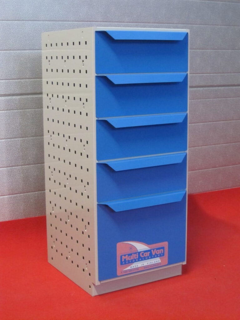 Multi Car Oy -autokalusteilla työsi tehostuu, työkalut kulkevat ehjänä, varaosat kulkevat myyntikuntoisina sekä järjestyksessä oleva autosi antaa positiivisen mielikuvan asiakkaillesi. Autokalusteiden muunneltavuuden ja monikäyttöisyyden myötä ne sopivat kaikkiin korimalleihin ja ovat käytössä markkinoiden edullisimmat.